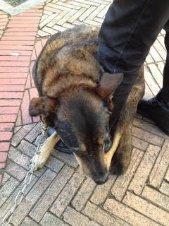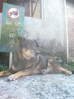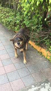 與太狼爺爺的初次見面,是在跟社團學姊認識學校毛孩成員時,偶然在路上遇到。學姊輕輕地呼喚他,他就跟上來了,然後我們一起一直到快要走出臨溪路前的他家的那條巷口。經過籃球場對面的那排樹叢時,太狼就一直往裡面擠,因為那條灌木叢是他專屬的不求人,他總要來來回回的貼著走個幾趟,才會心滿意足的離開。那時學姊介紹了太狼這麼有趣的嗜好,就覺得他真的是一隻很特別的狗狗。