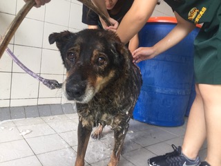 當然,還有很多學長姐會分享,關於他的那些冒險故事。最著名的,應該就是太狼會自己一隻狗,走到士林夜市去給自己的晚餐加菜的事蹟。他在士林夜市一代還擁有像是大胖、大棕 這樣的威武的綽號。後來的我,也幸運地當上了社團的幹部,為社團服務了一陣子。那時候,剛接任幹部的第一件關於狗狗照護的事情,就是要替太狼爺爺安排定期的洗澡與健康檢查。