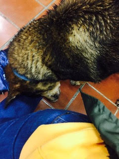(別人捐給社團的暖被,太狼少爺很是喜歡)