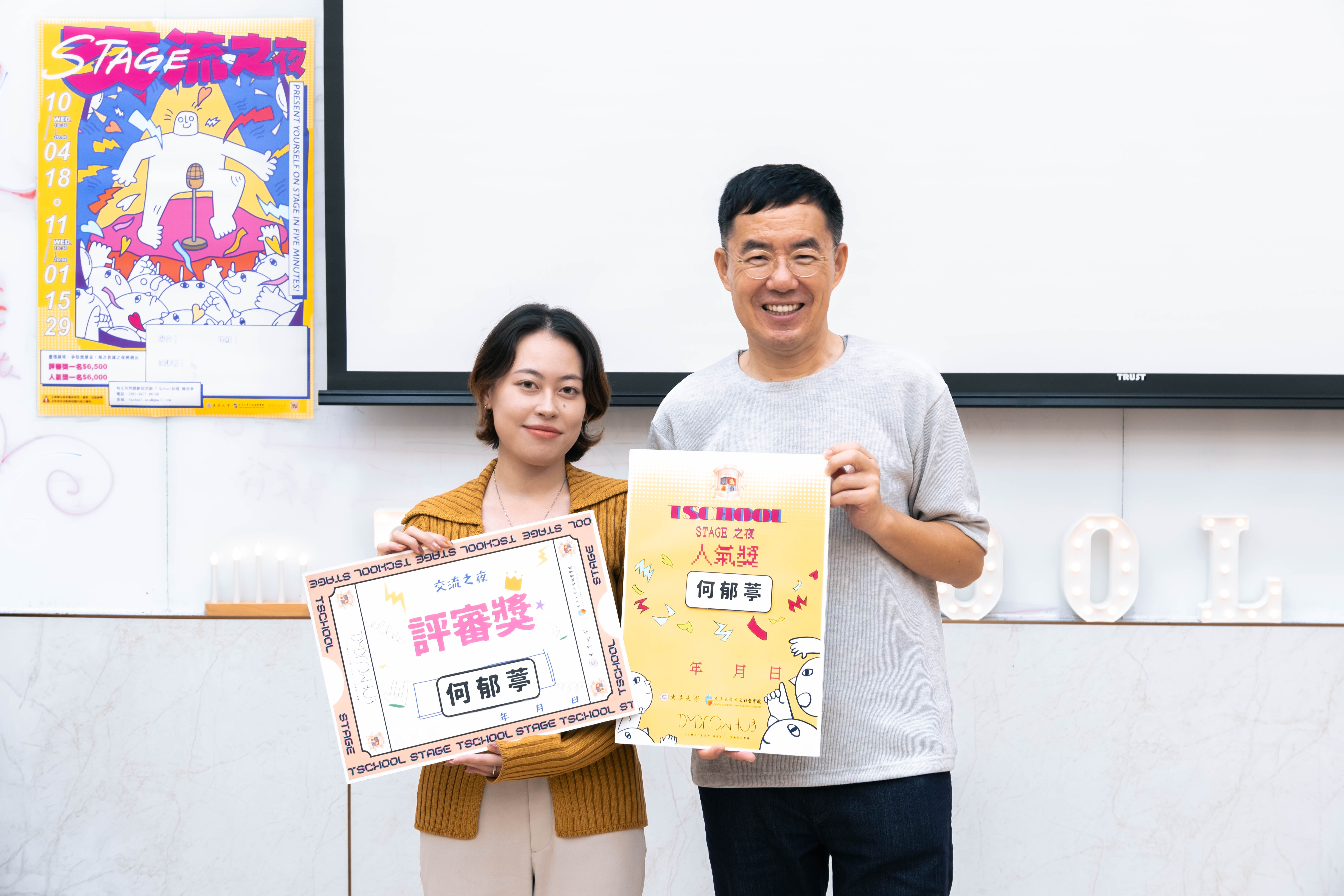感謝策劃所有舞台的教授及工作人員,參加T School是為了挑戰自己原先抗拒的,但是後來察覺到,於我而言最大的收穫是更明確知道自己擅長什麼,以及應該被放在什麼樣的位置。