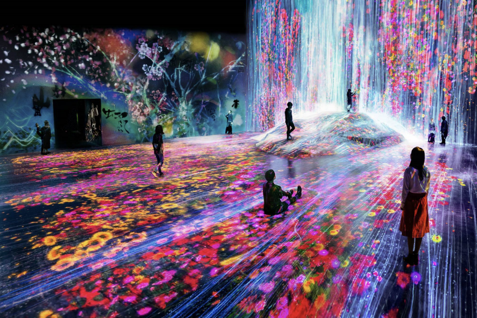 此外,觀眾在作品呈現中往往扮演了重要的角色,凸顯出數位藝術常見的「互動性」和「衍伸性」的特質。過往觀眾參與藝術,無非不是到美術館、藝廊觀賞藝術品,或坐在舞台前方看表演,而數位藝術時常將觀眾納入為作品的一部分,嘗試突破藝術與觀者的界線,以「沈浸式」或「互動性」的參與模式進行藝術展現。當觀眾的一舉一動觸發電子感應裝置時,隨之而來的是經過電腦運算龐大數據後投射出來的感官效果。透過觀眾的參與,互動式數位藝術演算出不同的結果,藉由雙方交會產生無限種排列的可能,日本的藝術團體teamLab3 就是一個最好的例子(附圖二)。數位藝術不全然提供一種沈浸式的參與,但數位媒材確實提供藝術家更多創作上的可能,也挑戰了過往單向「凝視」的視覺關係,模糊了作品與參與者之間的界線。而在提供新的感官體驗的同時,數位藝術受到質疑的是,這還是藝術嗎?