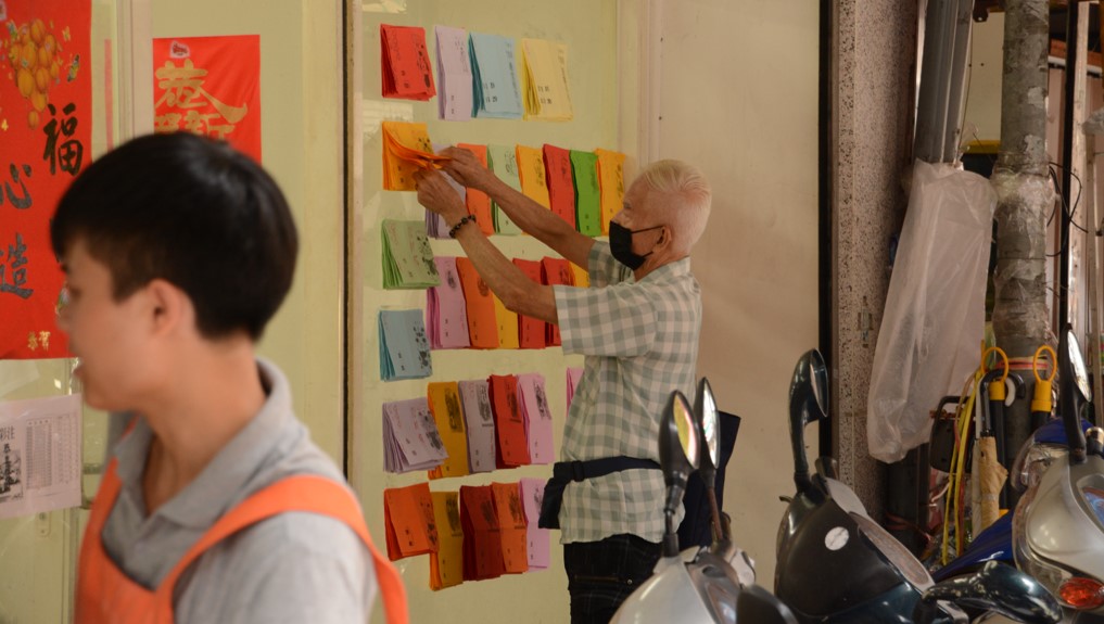 五彩繽紛的六合彩券看似低調卻又不避諱地張貼於店家的外牆,艋舺公園內,人群一圈圈地群聚著,手持紙券和筆,瀰漫著興奮與盼望的氛圍。遠遠就可以聽見人們的喧囂聲,他們正在進行一項台灣特有的風俗活動-六合彩。這個在法律灰色地帶的賭博遊戲,能吸引人群的,除了遊戲本身的刺激,更因為這是凝聚感情、人群互相交流的場所,即便不是政府認同接納的行為,這卻實實在在的是當地人的消遣。在辛勤工作之餘,這是消除疲勞、同時增進情感的生機盎然之地。