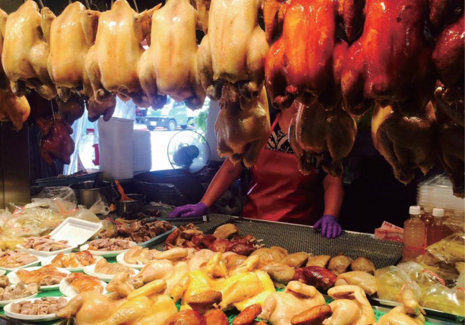 所謂三牲,即為三種牲畜,雞豬魚三種,供奉三牲是為了表達對神靈的尊敬,這些牲體都必須完整,而且各自有各自所代表的意思。鄰近龍山寺以及眾多寺廟的新富市場,自然而然就成為販賣這些商品的主要集中地。黃色的全雞,保留頭部,取臺語『全家』的諧音,象徵祈求全家平安,以及全家對神明尊敬虔誠之意。粉色的豬三層肉,是豬隻最肥美豐匀的部位,象徵祈求作物豐收、風調雨順;並代表供奉給神明最好的供品之意。至於白色的魚,不可去頭或去尾,為求完整一致,是在述說對祭祀的一慣堅持與對神明的尊重。